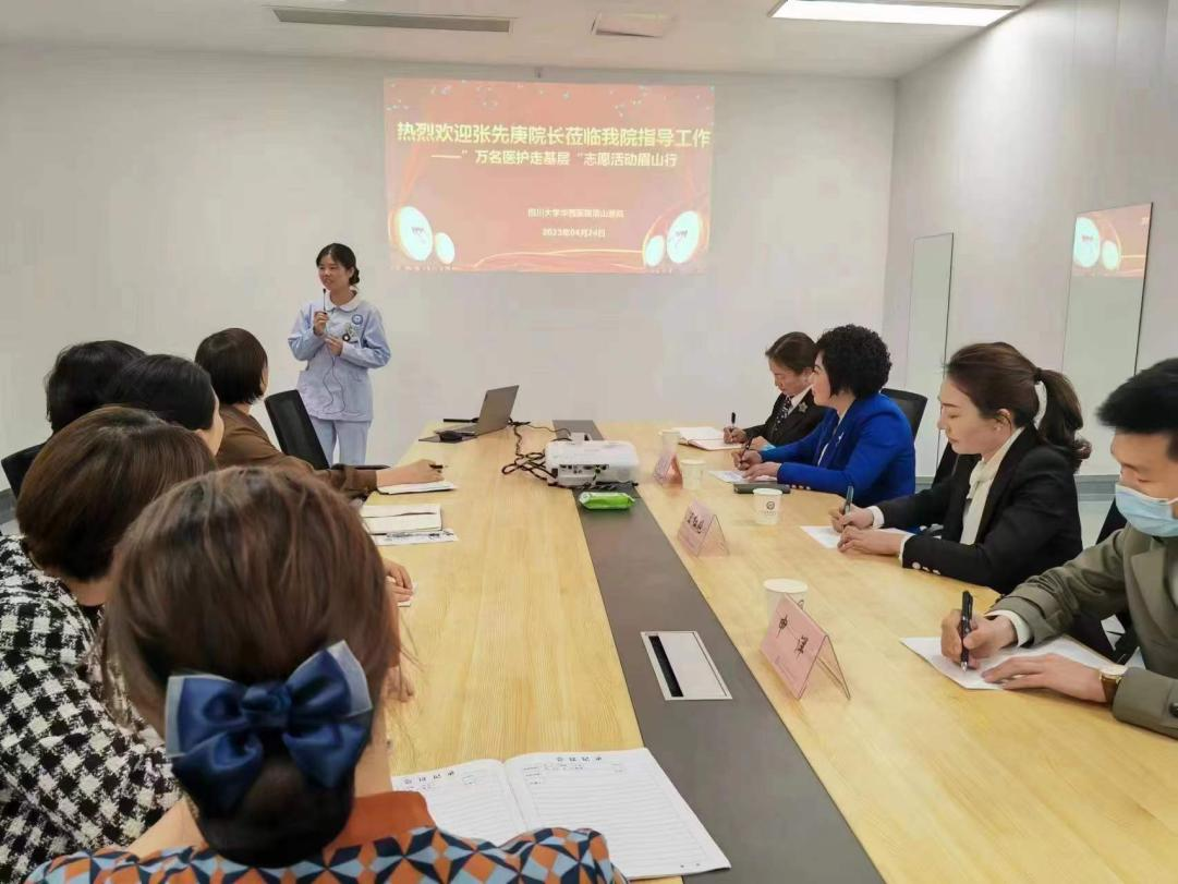 启动仪式后,张先庚院长来到眉山市人民医院为近200名护理管理与专业人员开展了“做新时代‘有为有位’优秀护士 以高水平卫生服务助推医院高质量发展”专题讲座。她指出,“万名医护走基层”志愿服务活动,是全省卫生健康系统扎实开展学习贯彻习近平新时代中国特色社会主义思想主题教育的实践行动,从志愿活动的背景意义、临床护士的“为”与“位”、高质量教学查房三方面进行讲解。
