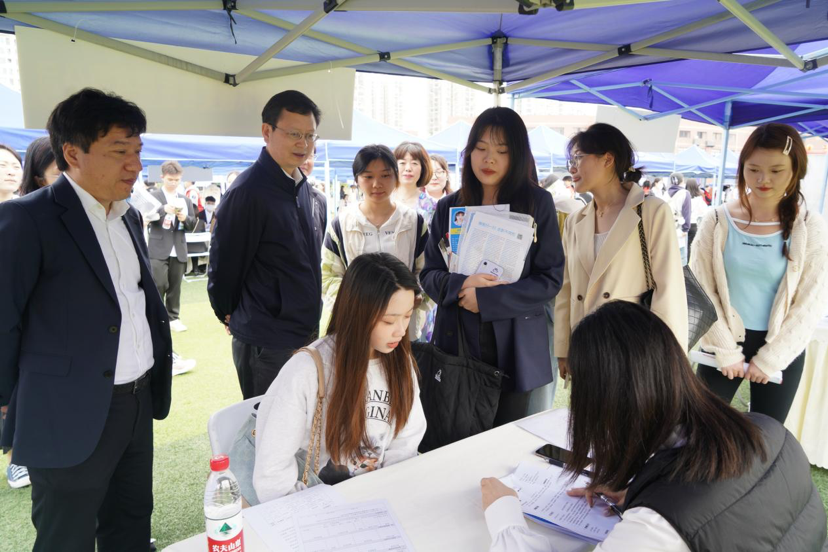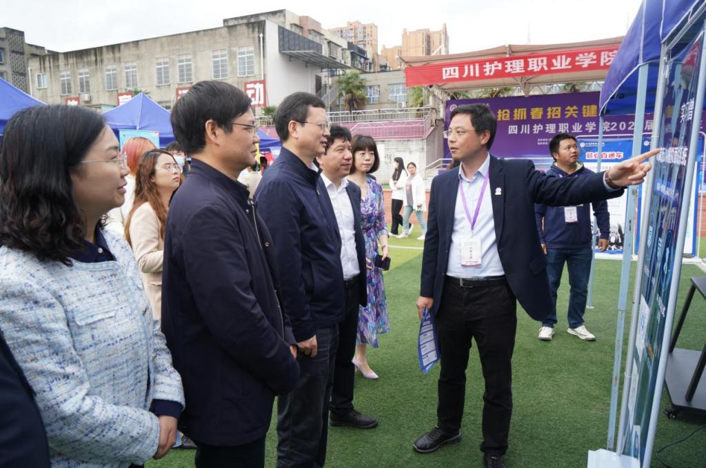 学院党委书记江涛、党委副书记彭博文、副院长陈劲松、党委副书记、纪委书记罗小强、副院长梁小利等领导来到双选会现场,与用人单位进行交流,勉励同学们结合自身特长和职业规划,充分展示自己的优势,提升与应聘岗位的匹配度,要求相关部门做好后勤保障工作,确保为用人单位和参会学生提供贴心服务。
