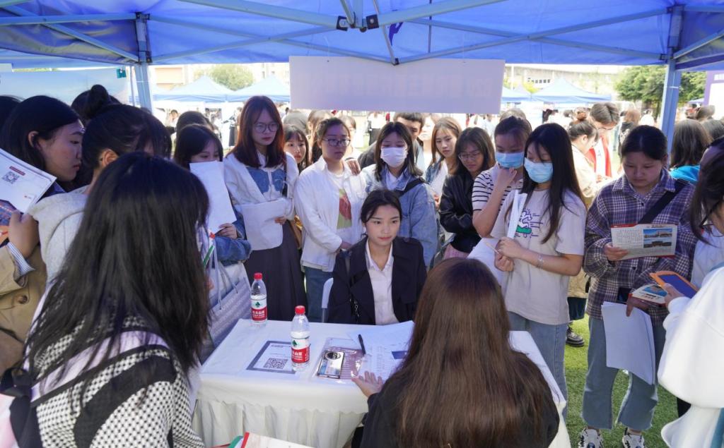 双选会现场,同学们热情高涨,积极投递简历并主动与招聘人员沟通交流,部分用人单位对毕业生进行了现场面试,开展单场宣讲会。