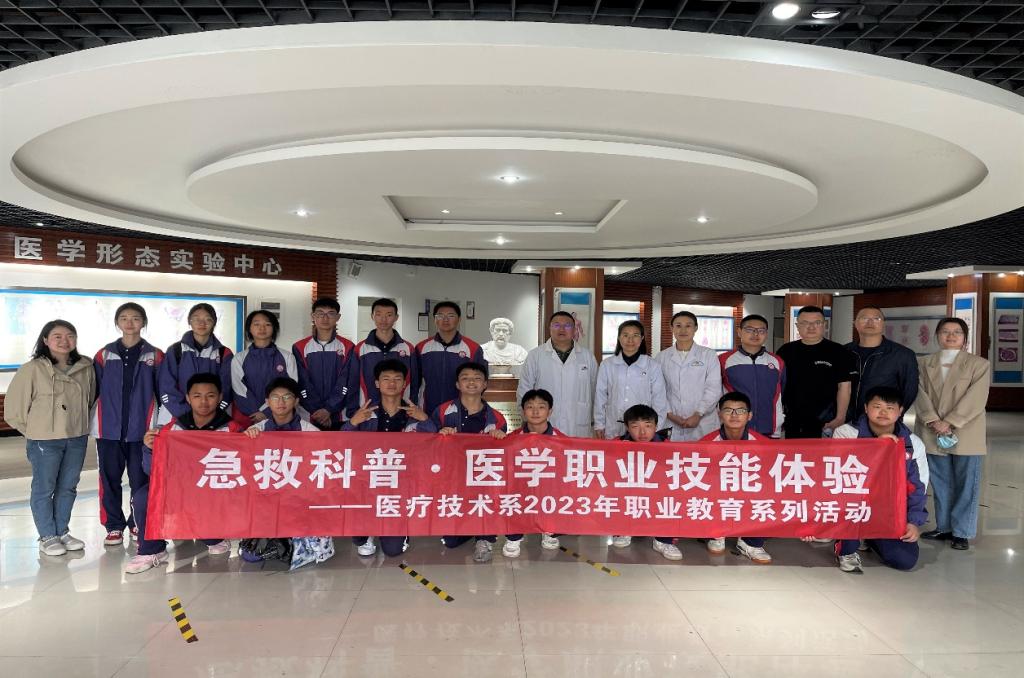 为深入贯彻落实党的二十大精神和习近平总书记关于职业教育的重要指示批示精神, 大力宣传普及医学知识,弘扬劳动光荣、技能宝贵的时代风尚,5月9日,医疗技术系党总支在成都校区开展急救科普暨医学职业技能体验活动,为龙泉第二中学学生宣讲急救知识技能、普及寄生虫预防知识。医疗技术系党总支书记、副书记、党员代表参加活动。