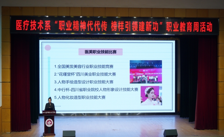为深入贯彻落实党的二十大精神和习近平总书记关于职业教育的重要指示批示精神,传承技能成才、技能报国的时代风尚,营造“崇尚一技之长”的浓厚校园氛围,5月25日,医疗技术系在成都校区学术报告厅开展“职业精神代代传 榜样引领建新功”职业教育周活动。校外行业专家、医疗技术系全体师生参加活动。