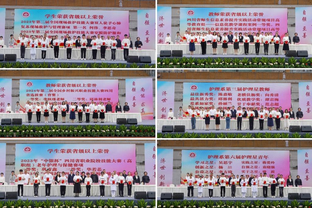 接着,为树立宣传典型,鼓励师生“以赛促学、以赛促教、以赛促练”,激励广大师生在新时代、新征程中奋发有为、担当作为,对一年以来护理系荣获的6项国家级奖项,28项省级奖项师生进行表彰。希望全体师生载誉前行,再创辉煌。