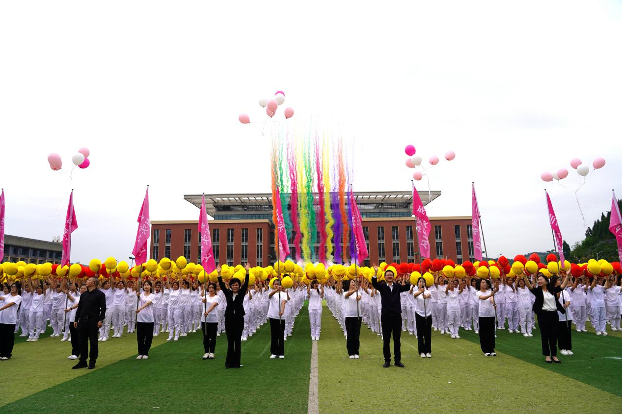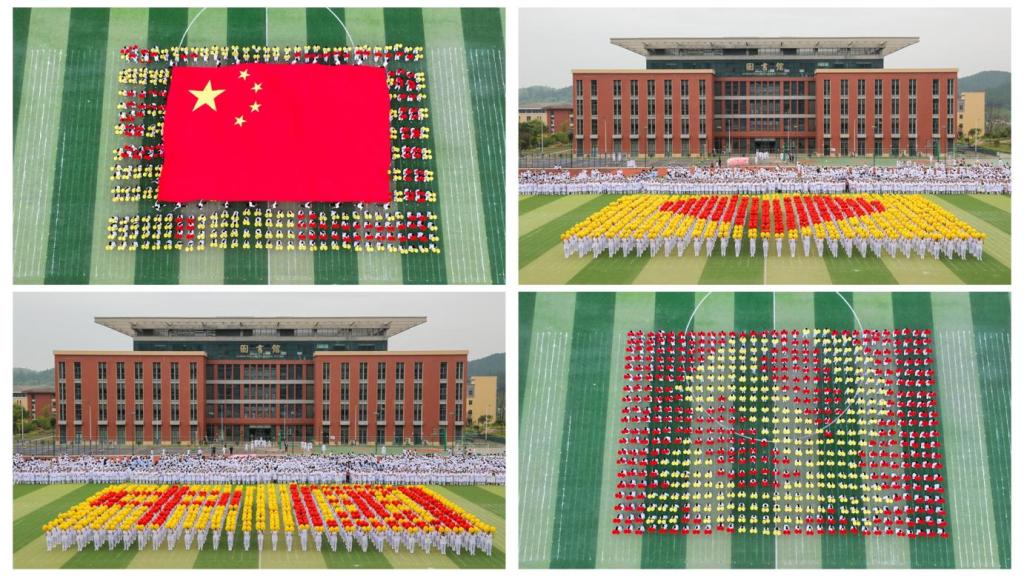 鼓声阵阵打出青春活力的舞蹈《红昭》,展现出了学子们奋勇争先的矢志决心和昂扬奋进的青春风采。“初心照亮新征程”千名学生集体舞表演,不忘初心奏响青春旋律,气势恢宏华彩乐章。