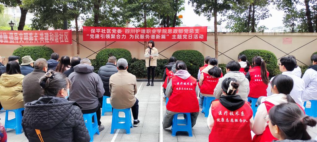 为学习贯彻落实党的二十届三中全会精神和四川省卫生健康大会精神,深入实施健康中国行动,12月12日,学院思政部第二教师党支部与龙泉驿保平小区党支部联合开展“党建引领聚合力 为民服务谱新篇”主题党日活动,支部党员、师生代表及小区居民共80余人参加。